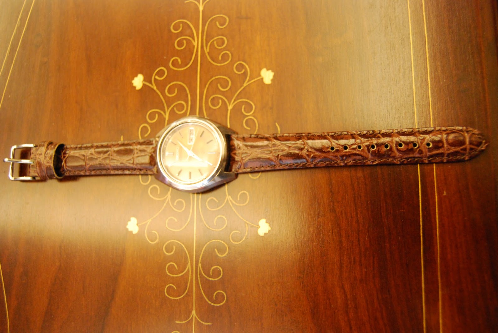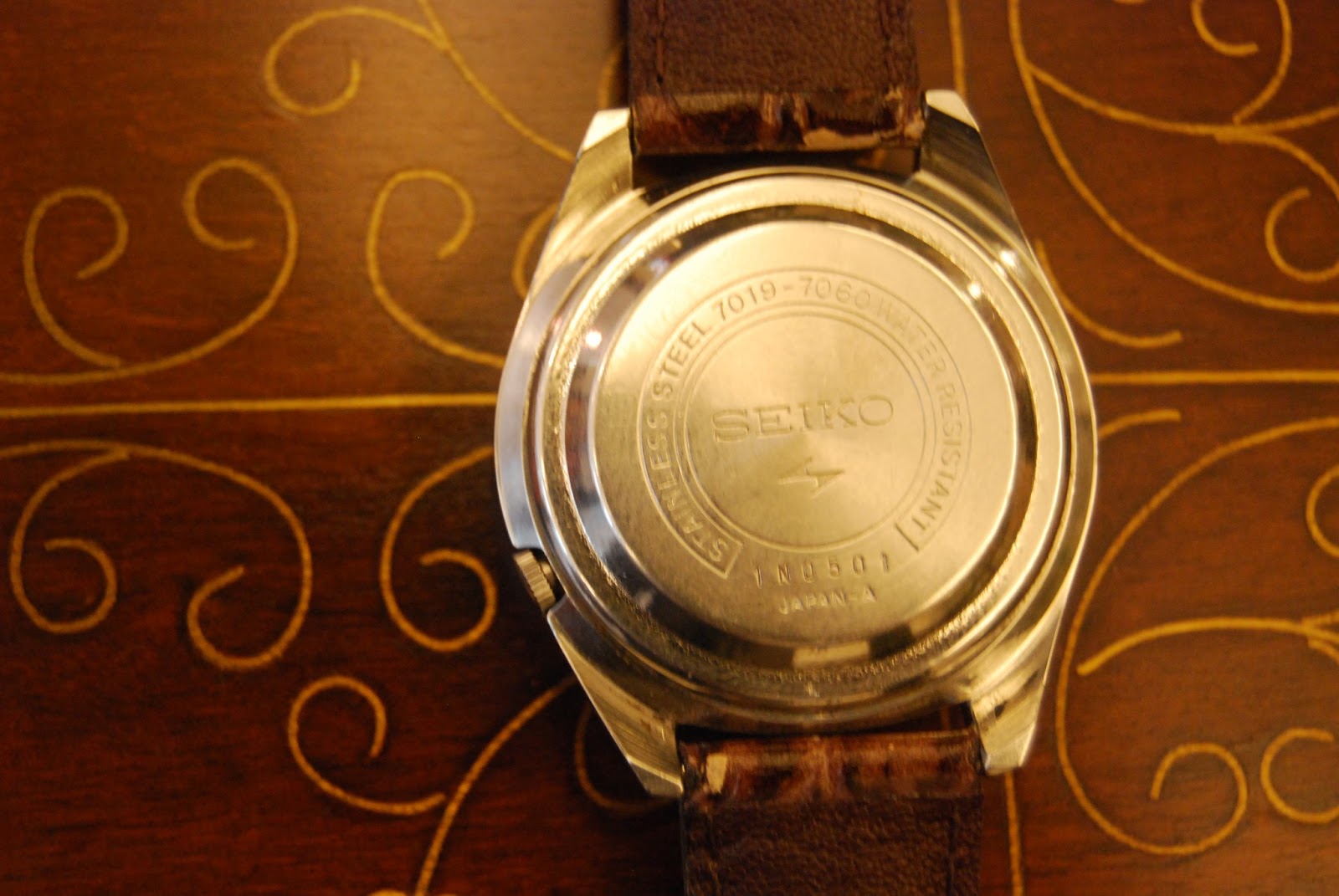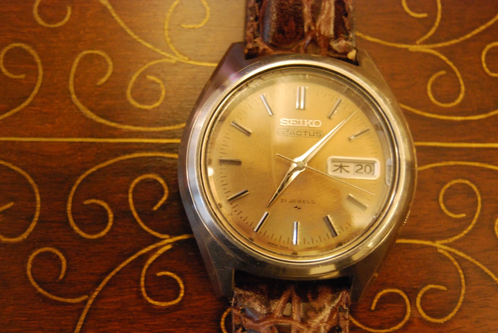 これは1975年製、自動巻きで日付曜日付、cal7019A、21石のムーブメントを搭載