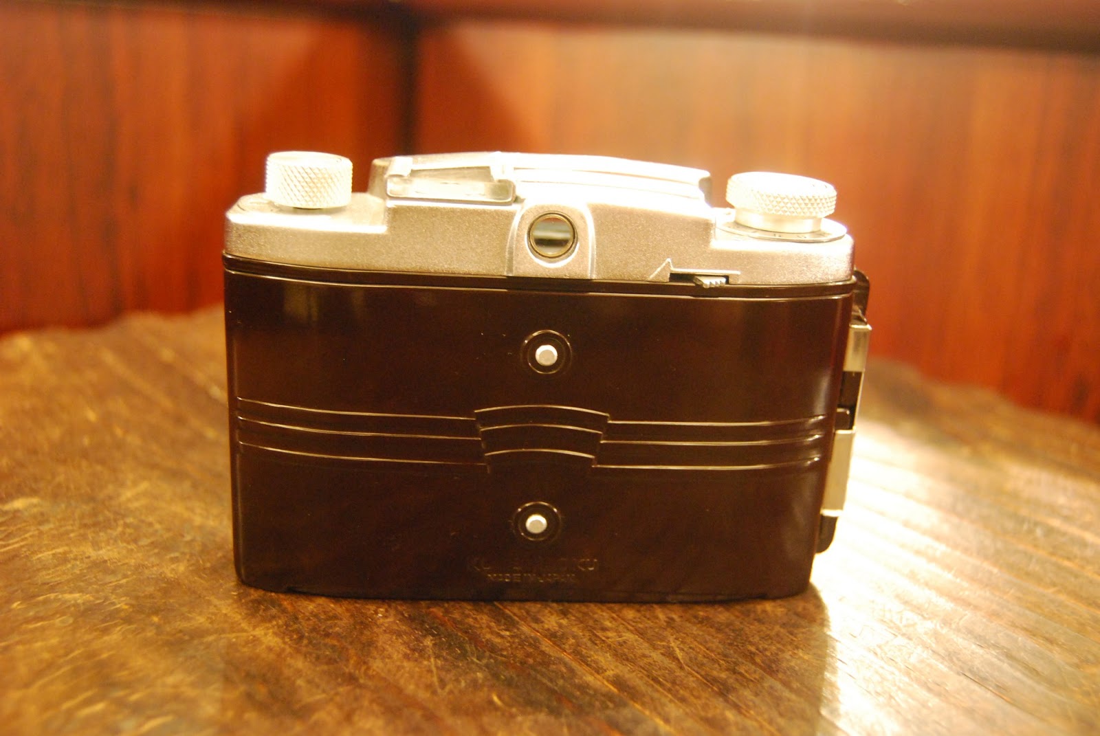 {昭和28年}に発売した35ミリレンズシャッター式蛇腹カメラです。外観は