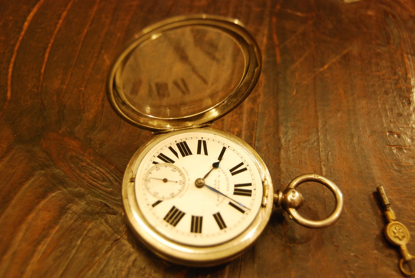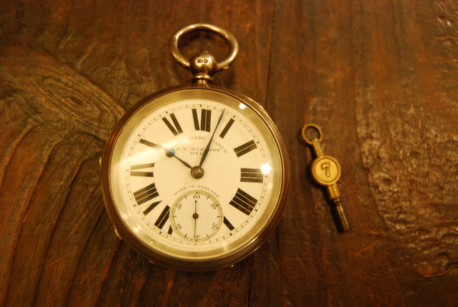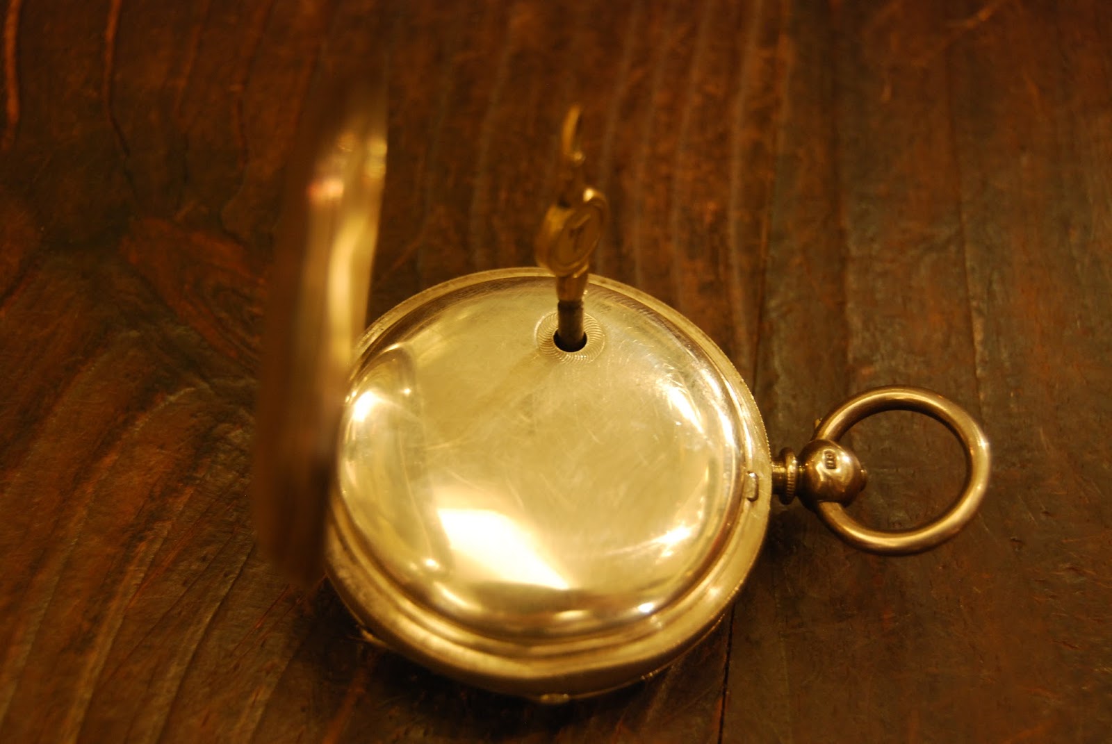 今日のご紹介はカギ付きの大型懐中時計です。メーカー名や詳細不明ですが