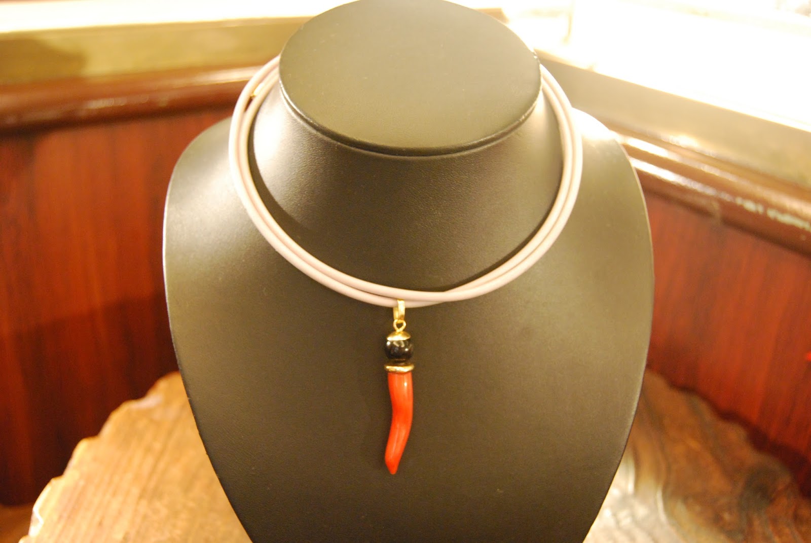 今日のご紹介はとうがらしモチーフペンダントです。金具の部分はK18製で黒の