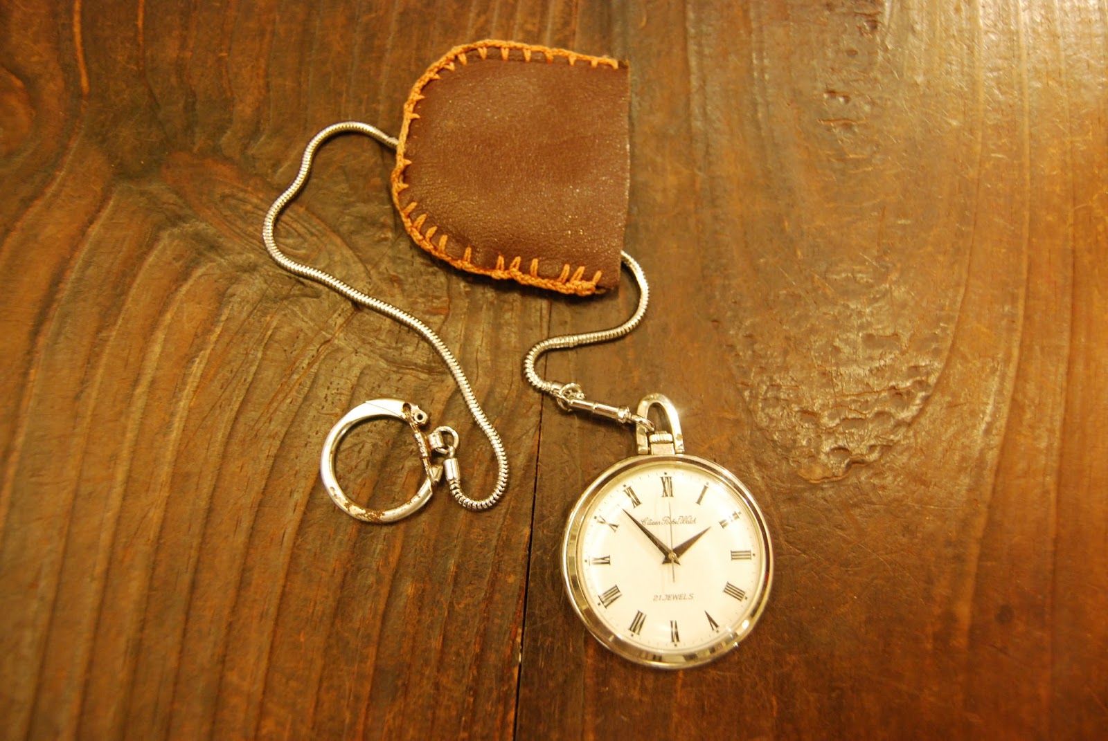 ムーブメントを搭載しており小振りで携帯しやすく皮ケースも付属しています。