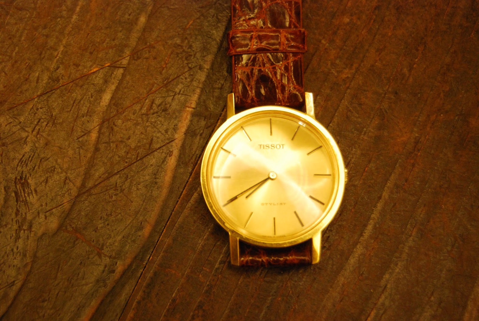 今日のご紹介はティソの金色ケース・文字盤の手巻きです。1960年代製でとても