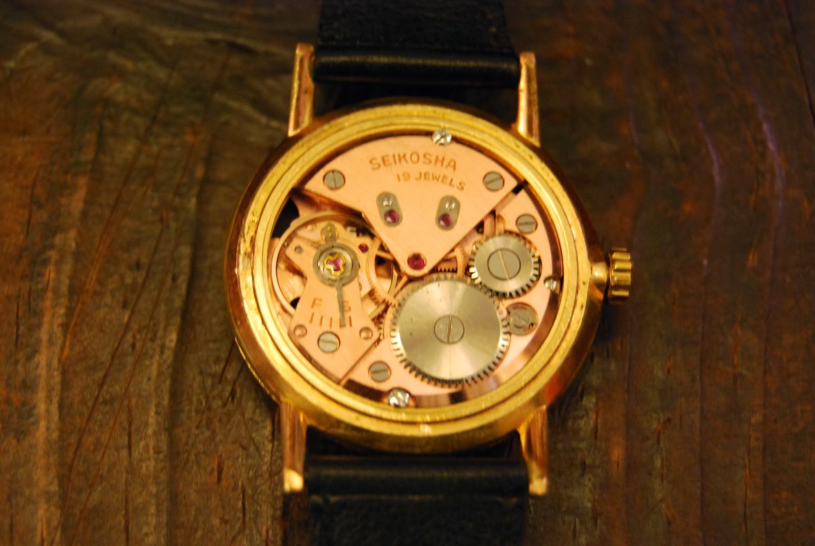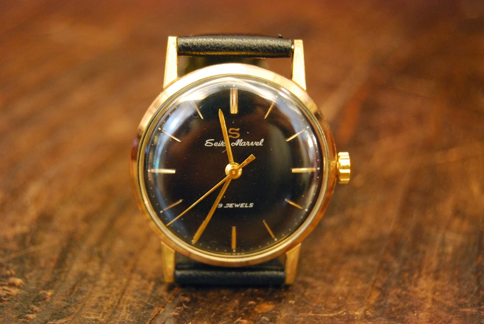 今日のご紹介はセイコーSマーベルの黒文字盤・金色ケース{Ref14036