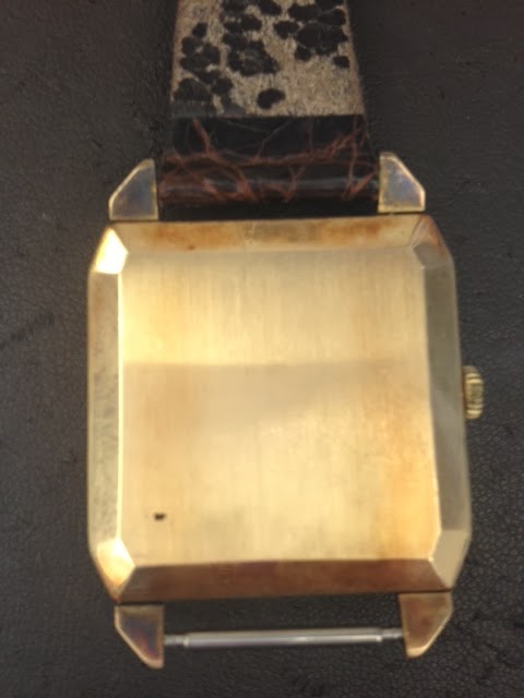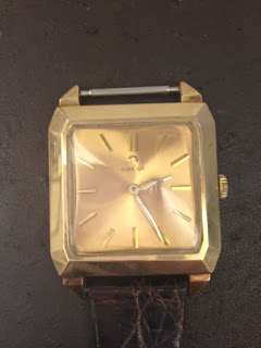 今日のご紹介はオメガの角型金色ケース金色文字盤です。1970年代製で2針の