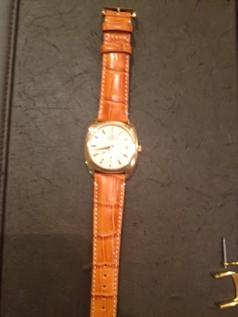 今日のご紹介はボーム&メルシエの金色ケース・クッションケース型手巻きです。
