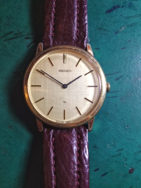 今日のご紹介はセイコー・シャリオです。1972年製で金色ケース、2針で当時は