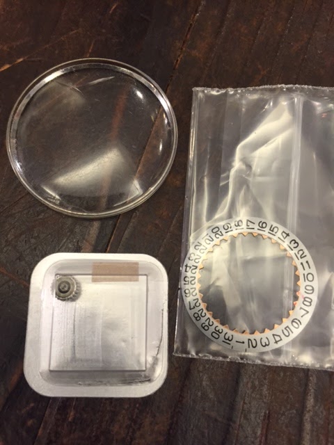 風防交換の依頼でお預かりしました。詳しく調べてみるとリューズとカレンダー部の日車