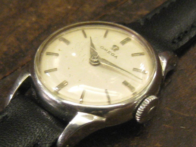 ・レディース・ラウンド型・手巻きです。アンティークな味わいとシンプルなデザイン