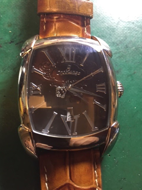 交換でオロビアンコのトノー型ウォッチです。裏蓋の開け閉めにコツがいるため