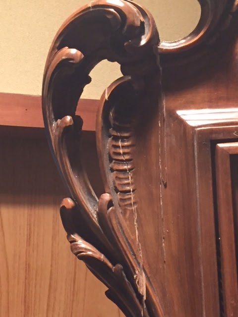 加工修理⑧時計前面左側の装飾部分の亀裂と本体の削れている部位の修復