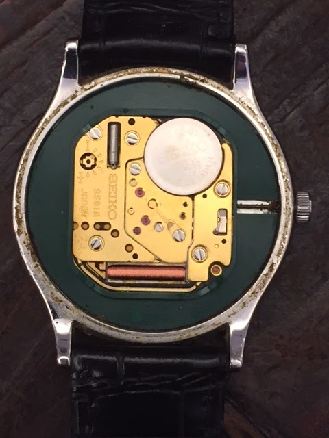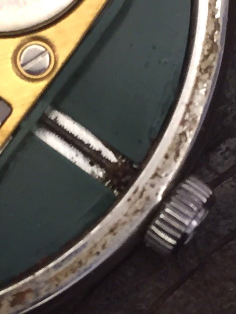 お預かりした時の状態は不動で巻き芯とリューズが錆びてリューズが回りませんでした。20年以上